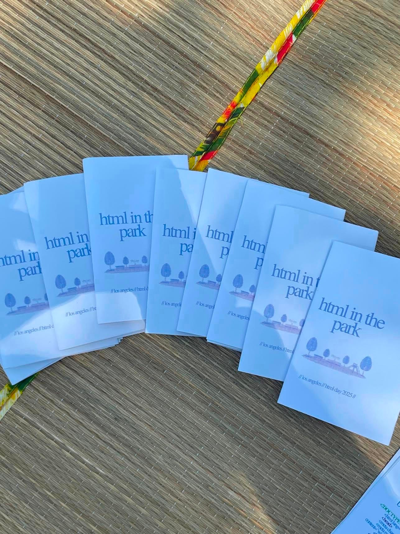 The New York City event website was designed to reflect that it took place during sunset hours, 6 to 8 p.m., Ashley Sun, one of the three organizers, told me. Aside from creating the site and bringing materials, including a tarp, snacks, and printed copies of “The HTML Cookbook” zine from last year’s Toronto freewrite, much of the event came together organically, Sun said. Other attendees brought green tape to tag items and passed around an exquisite-corpse paper, to which each of us added a line of HTML.