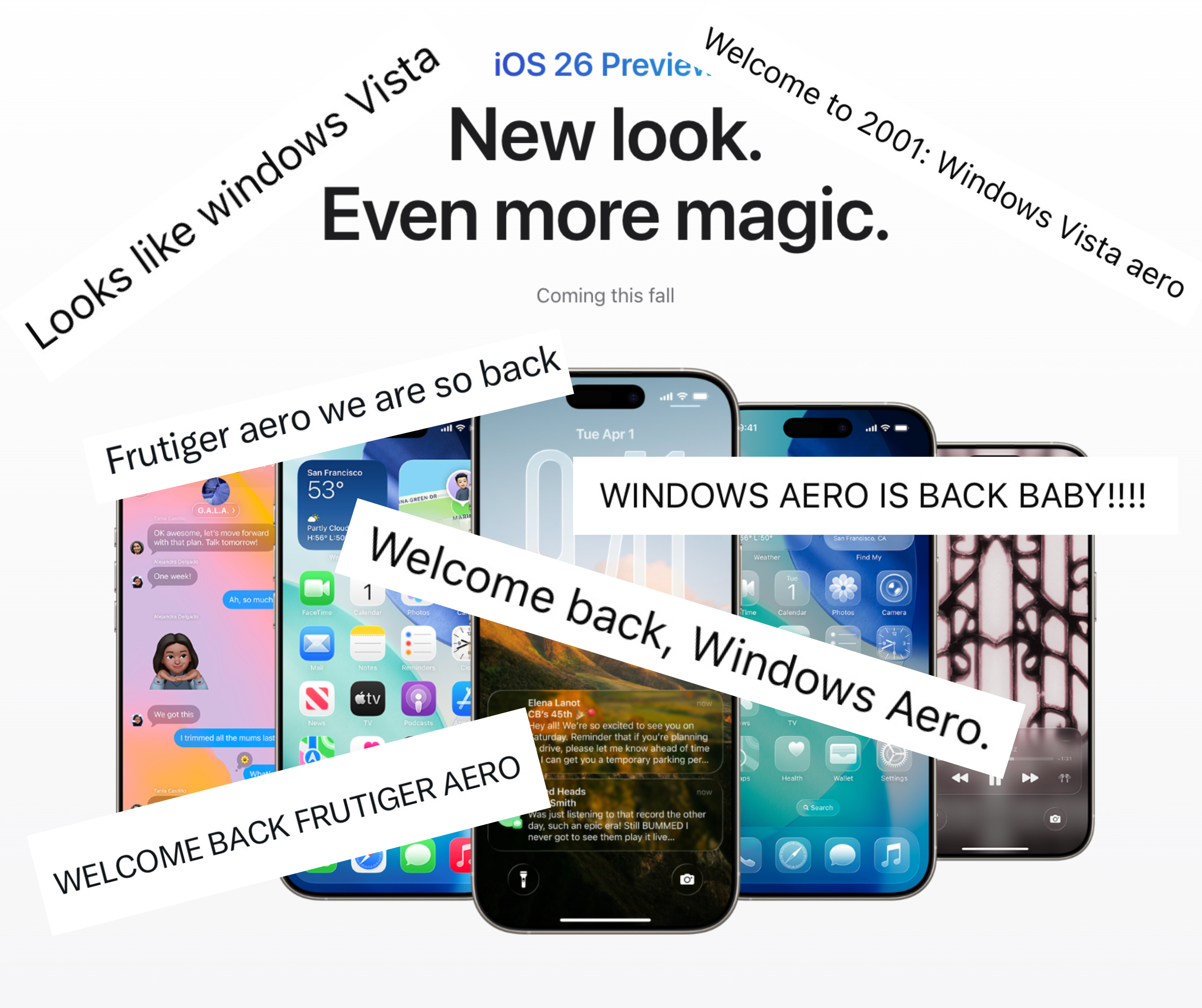 I’m always excited for Apple’s software updates at WWDC and new device launches in the fall, specifically for the memes. CNET did a roundup here. Much of what I saw on X compared Liquid Glass to Windows Vista and the design language Windows Aero.