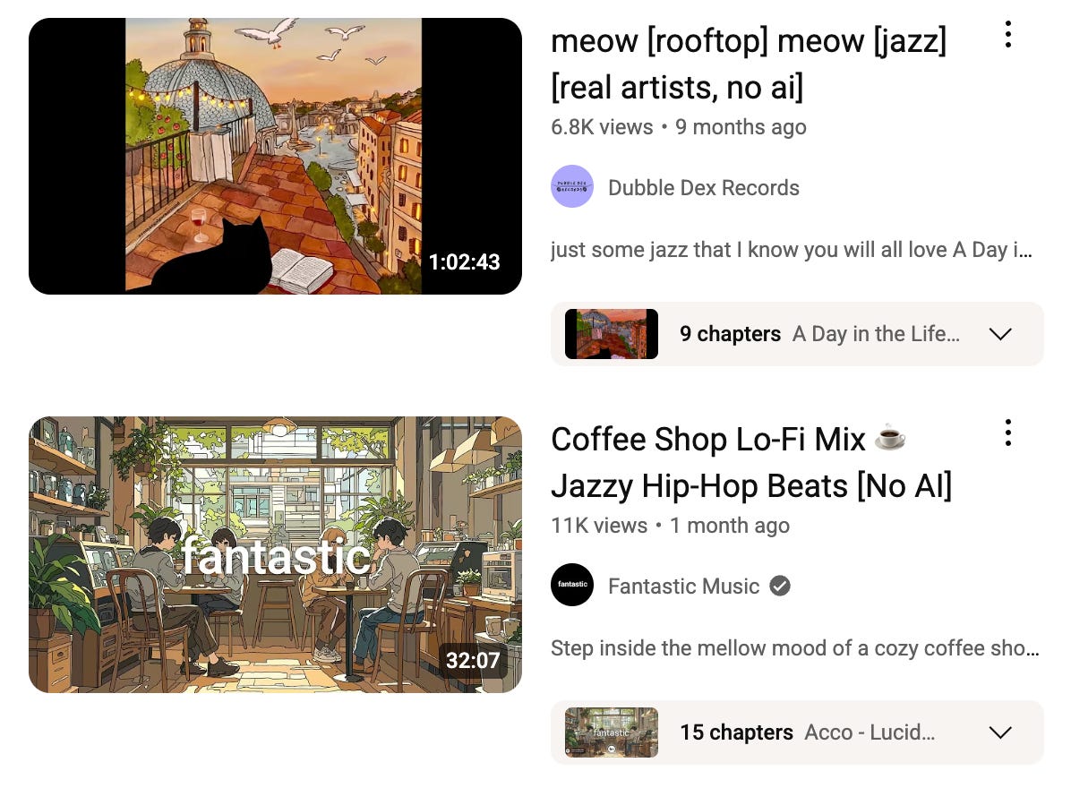 “YouTube Playlists Are Advertising ‘No AI’ as Entire Site Gets Choked by AI Slop”—Frank Landymore, Futurism.