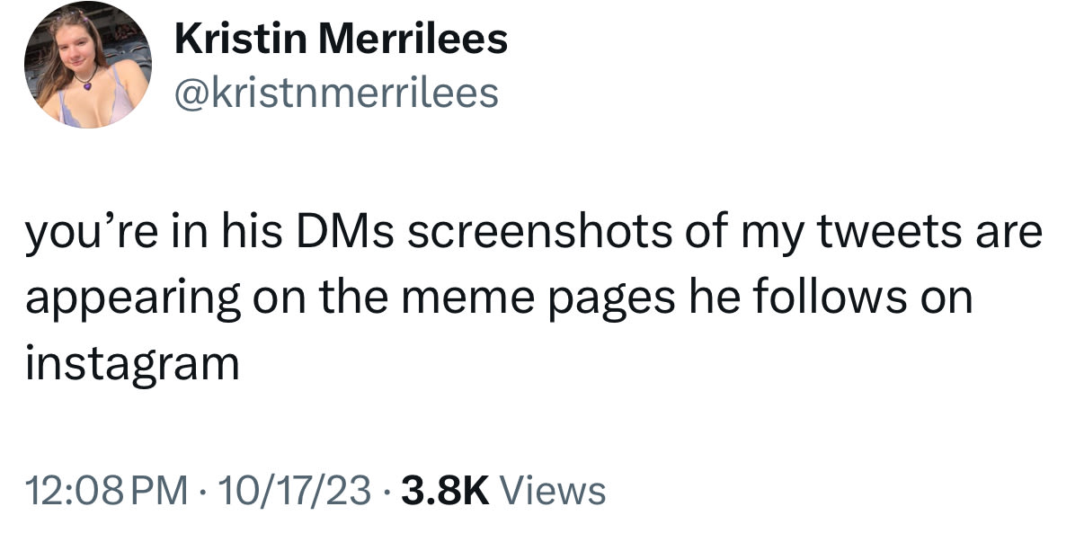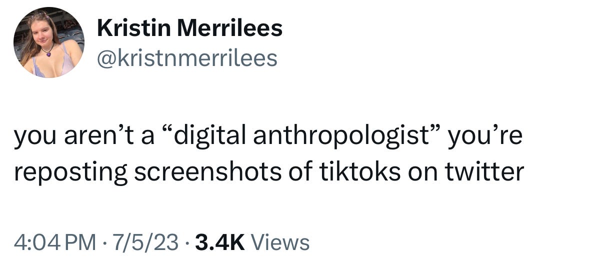 I also texted friend-of-the-newsletter Stella Brown—who always has smart things to say about the internet and culture—about her screenshot habits. Here’s a screenshot of her response.