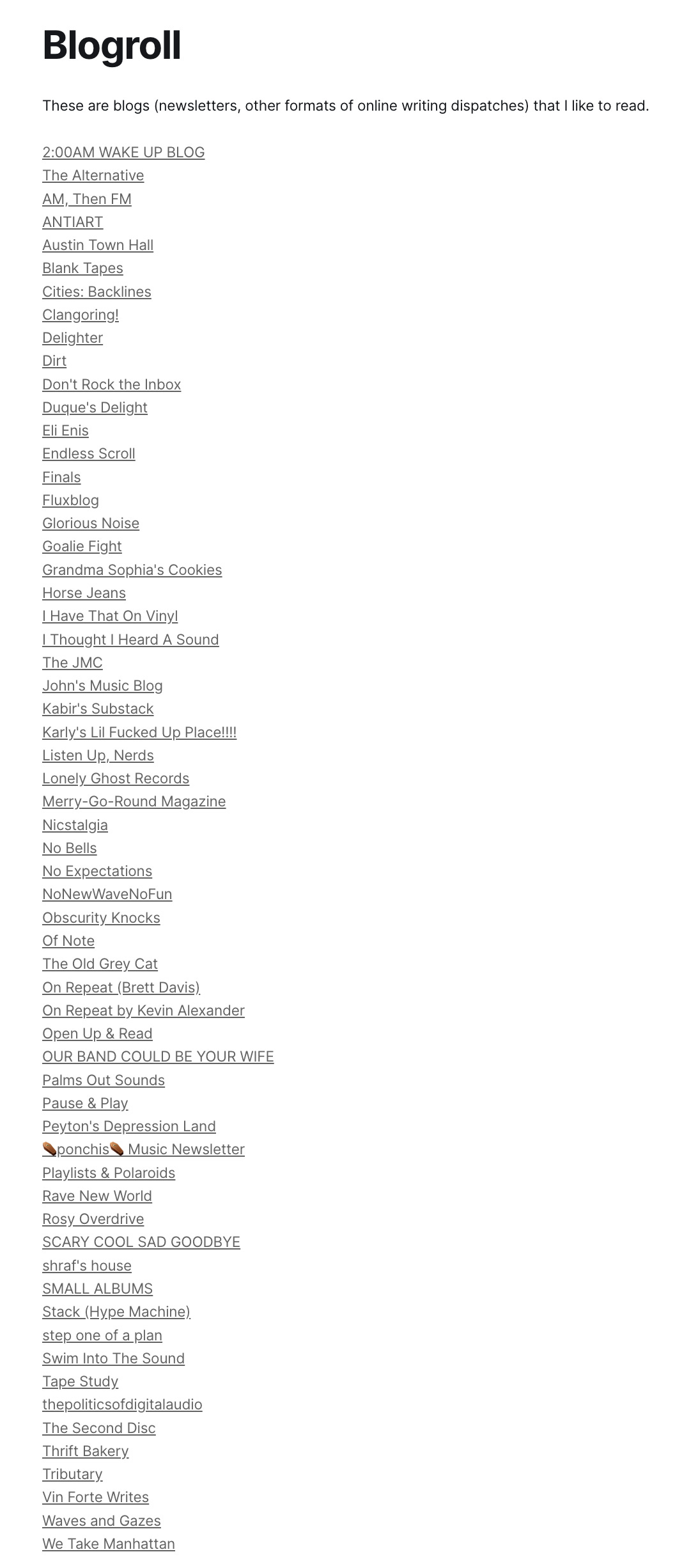 I will go rogue and say I feel weirdly optimistic about at least personal music writing online. I do think there is an overall trend toward blogging, having newsletters, and trying to maybe break away from the social media grind of it all. I’ve got a blogroll on my website that shows there’s still plenty of people who are putting in the effort to do that on an individual level. I think the more slop there is, the more inspiration there will be to be anti-slop.