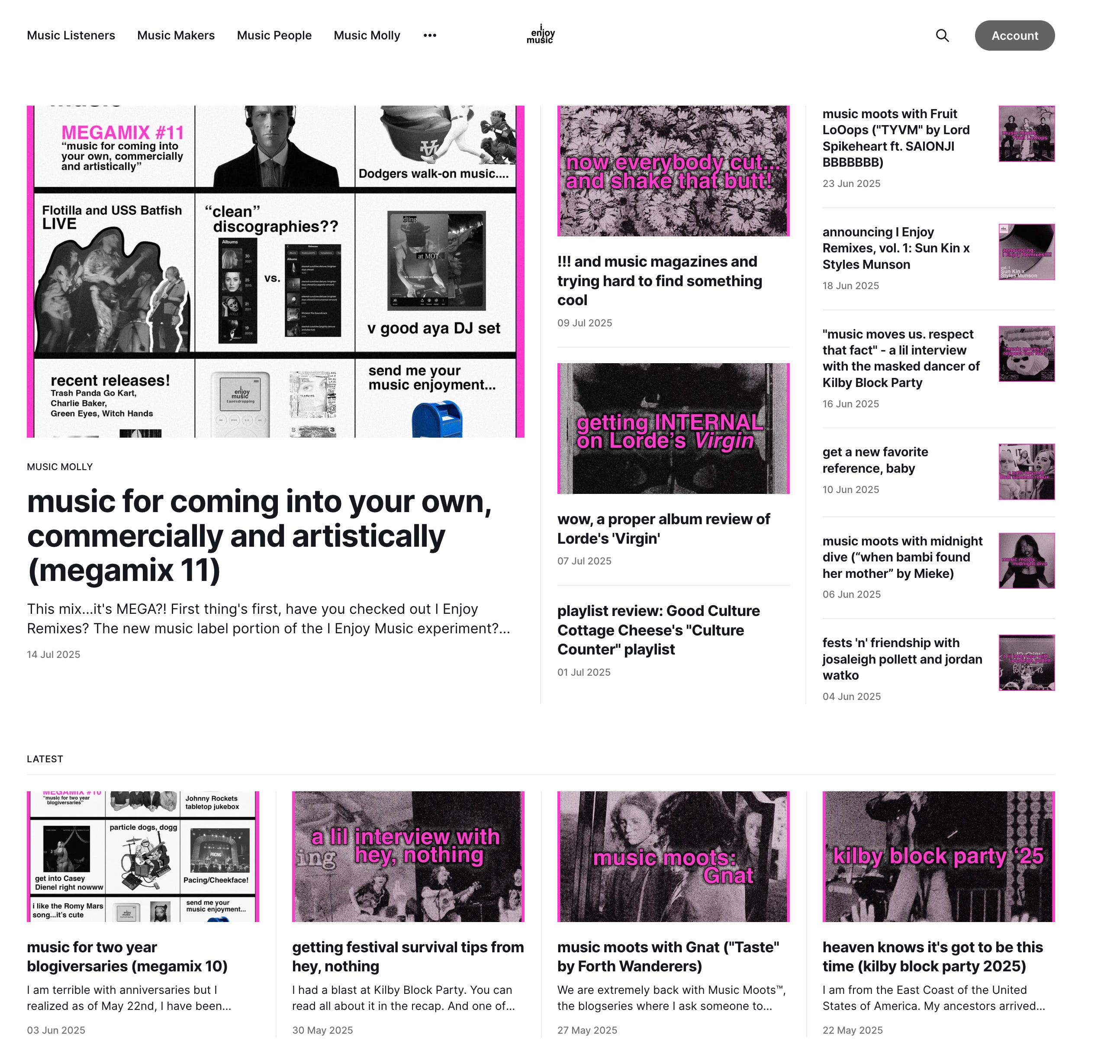PHONE TIME: With I Enjoy Music, you’re talking to people who make music. You’re getting songs from people who are music enjoyers. And then you are also kind of writing about everything else related to music. How do you think about what to write about?