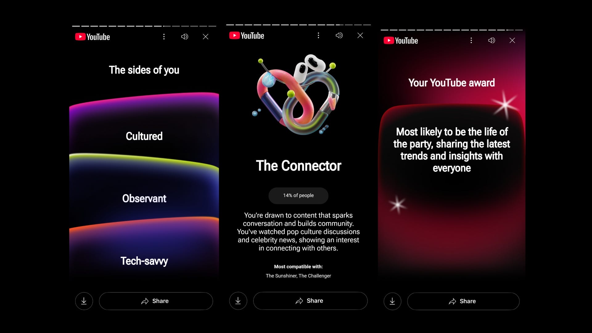 “You’ll get a set of up to 12 different cards that spotlight your top channels, interests, and even the evolution of your viewing habits, or which personality type you fall into based on the videos you loved to watch!” product manager Manthra Panchapakesan wrote in a company blog post.