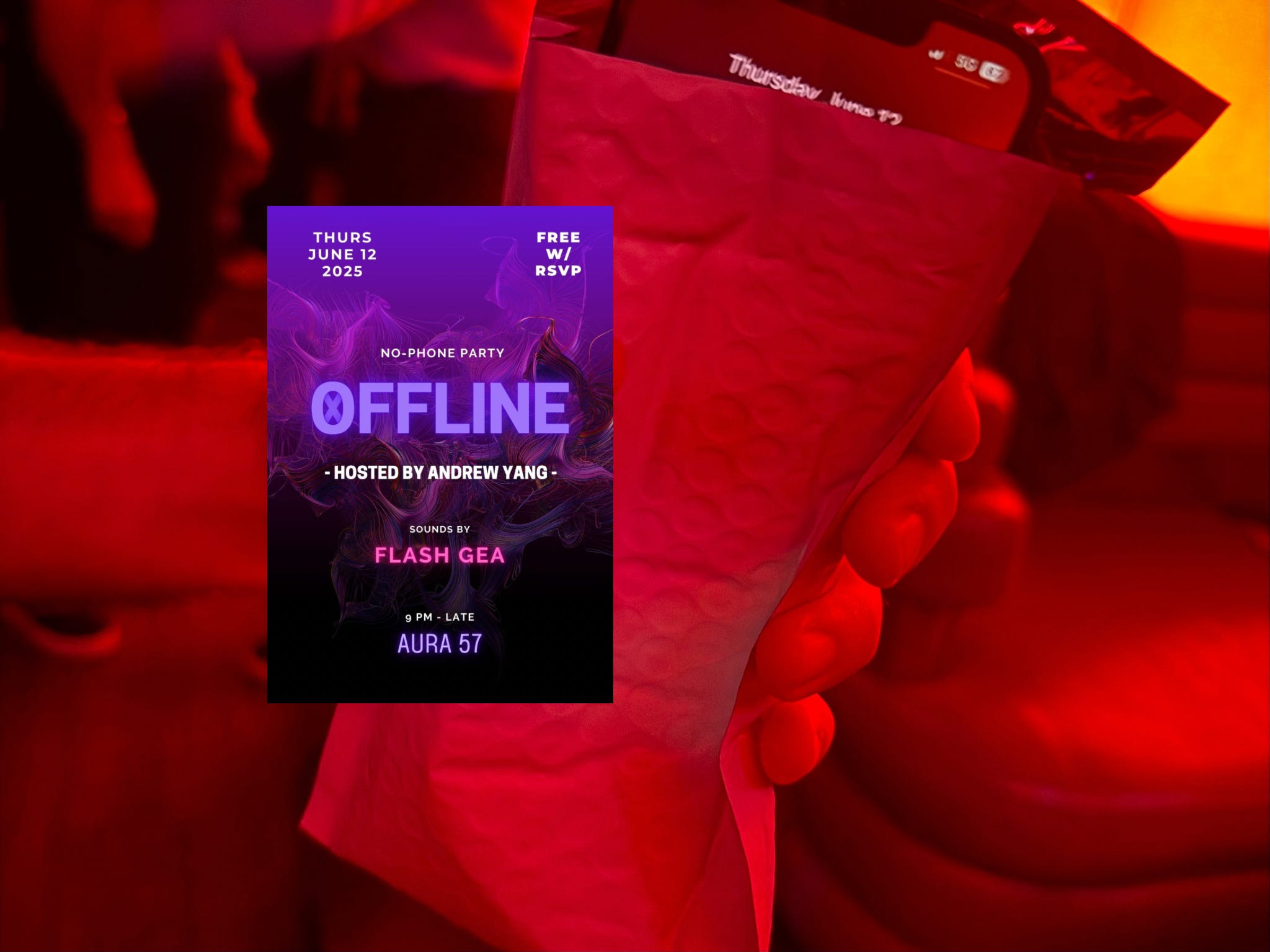 I’m not a big partier, but when a friend texted me the invite poster for “OFFLINE,” a no-phone party hosted by Andrew Yang, I replied, “Okay I’m so there.” I wrote most of this newsletter on the train home.