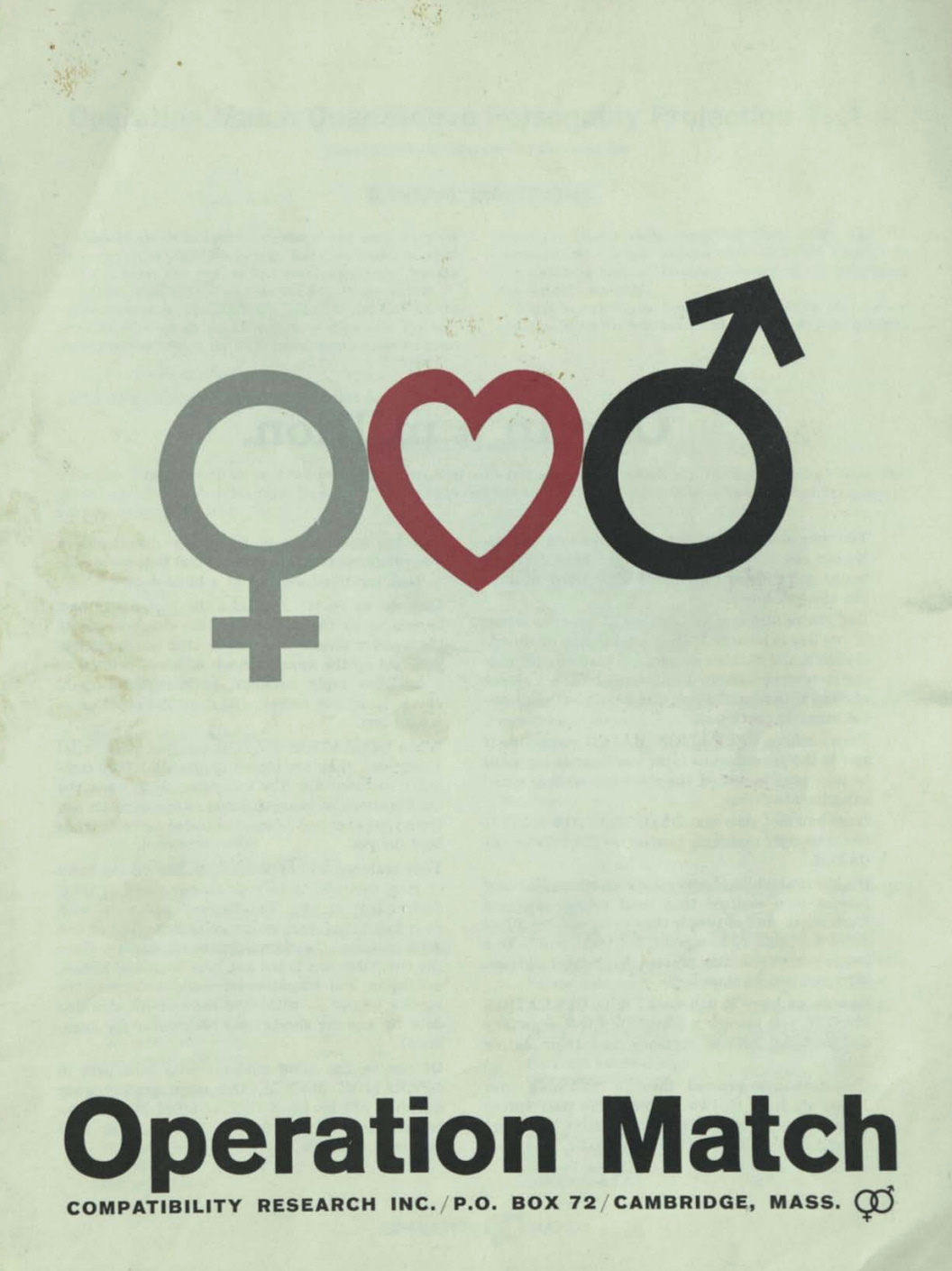 “OPERATION MATCH is a computer matching project—the only one of its kind. It’s the brainchild of several mixer-weary Harvard juniors who realized that most college students know what kind of people they enjoyed dating. Blind dates were fine up to a point, but there had to be a better way than the present haphazard system. Why not use a computer?”