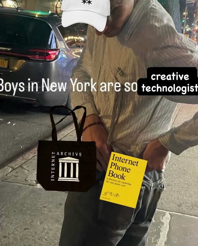 The Internet Phone Book in this meme is a project by Kristoffer Tjalve and Elliott Cost. The book is an “annual publication for exploring the vast poetic web, featuring essays, musings and a directory with the personal websites of hundreds of designers, developers, writers, curators, and educators,” as described on its website.