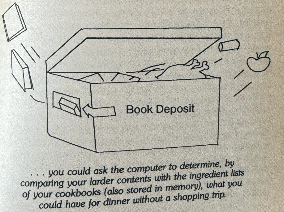 Other than the illustrations, I was most drawn to Chapter Ten, “Harnessing the Information Explosion.” Deken touches on many ways the personal computer would reinvent information flow, including in newspapers and magazines, libraries, political debates, advertisements, public relations.