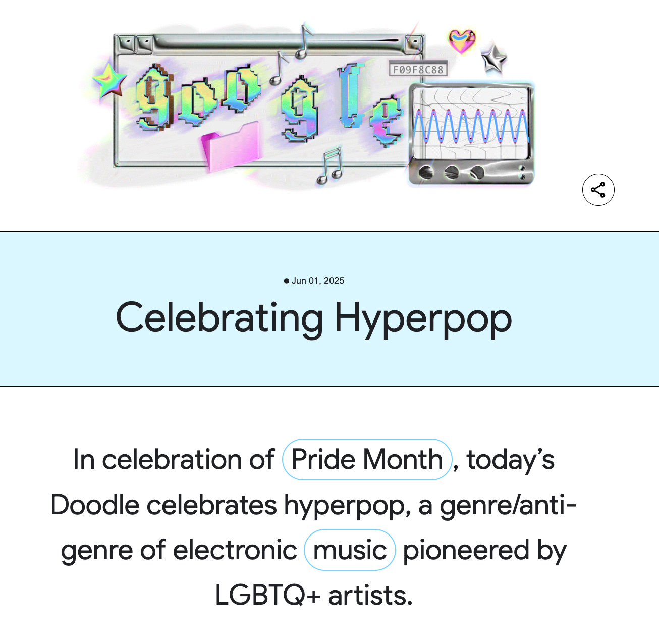 The original Timothée Chalamet look-alike competition relied on intentionally low-effort posters plastered around the city—a format which many copycats have also used. The June 1 Google Doodle is a celebration of hyperpop.