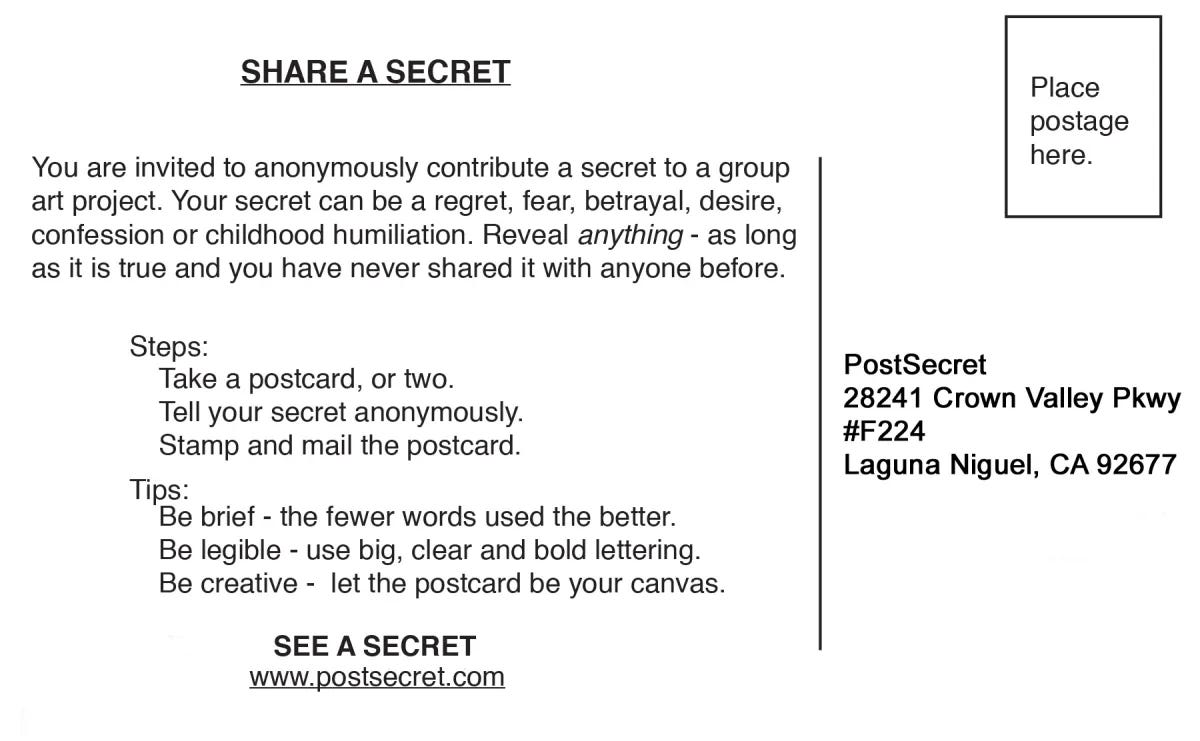 āI feel like PostSecret is almost like an anti-Facebook. Itās the true story that you would normally never share in a public arena. But in some ways, the more of ourselves we share online through social media, the less value it has.ā ā Frank Warren in a 2015 interview with Ben Huberman, Longreads