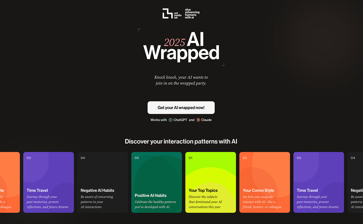A team at the MIT Media Lab also launched an AI Wrapped as part of a research study. “Your data will be de-identified and you will be able to review your chats before analyses are run,” according to the site’s consent form.
