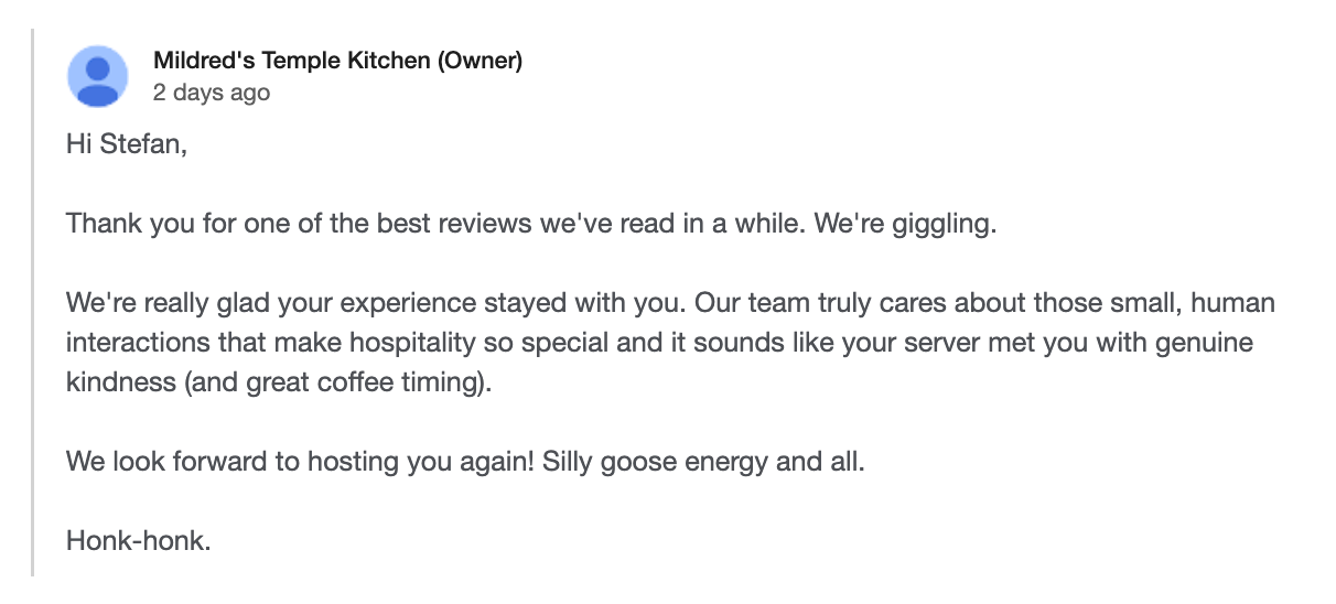 So I’m not spending hours. Maybe I should actually, like scrolling through different reviews. But I always love finding one that reveals something to me about someone as a person. It just shows that through all these layers on the internet and through all these platforms, there’s a part of you that still comes through.
