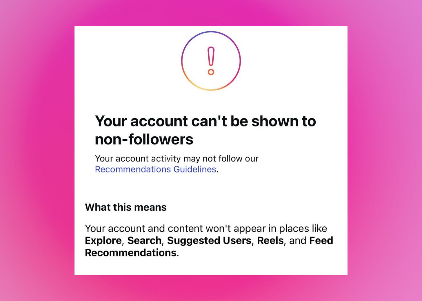 At the end of last week, many meme accounts were in a frenzy. The cause of the panic? Instagram had sent many notifications that their accounts were not in line with recommendations guidelines. “Your account and content won’t appear in places like Explore, Search, Suggested Users, Reels, and Feed Recommendations,” the notifications stated, recommending users edit or delete certain violating posts to remedy the problem.