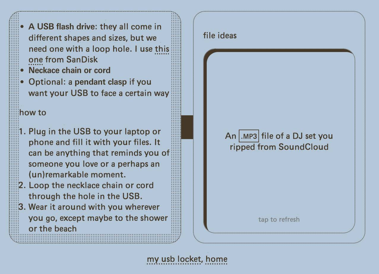 “When I saw a photo of someone wearing a USB as their necklace, I was like, “Can USBs be lockets in a way like that? That can hold memories,’” he said.